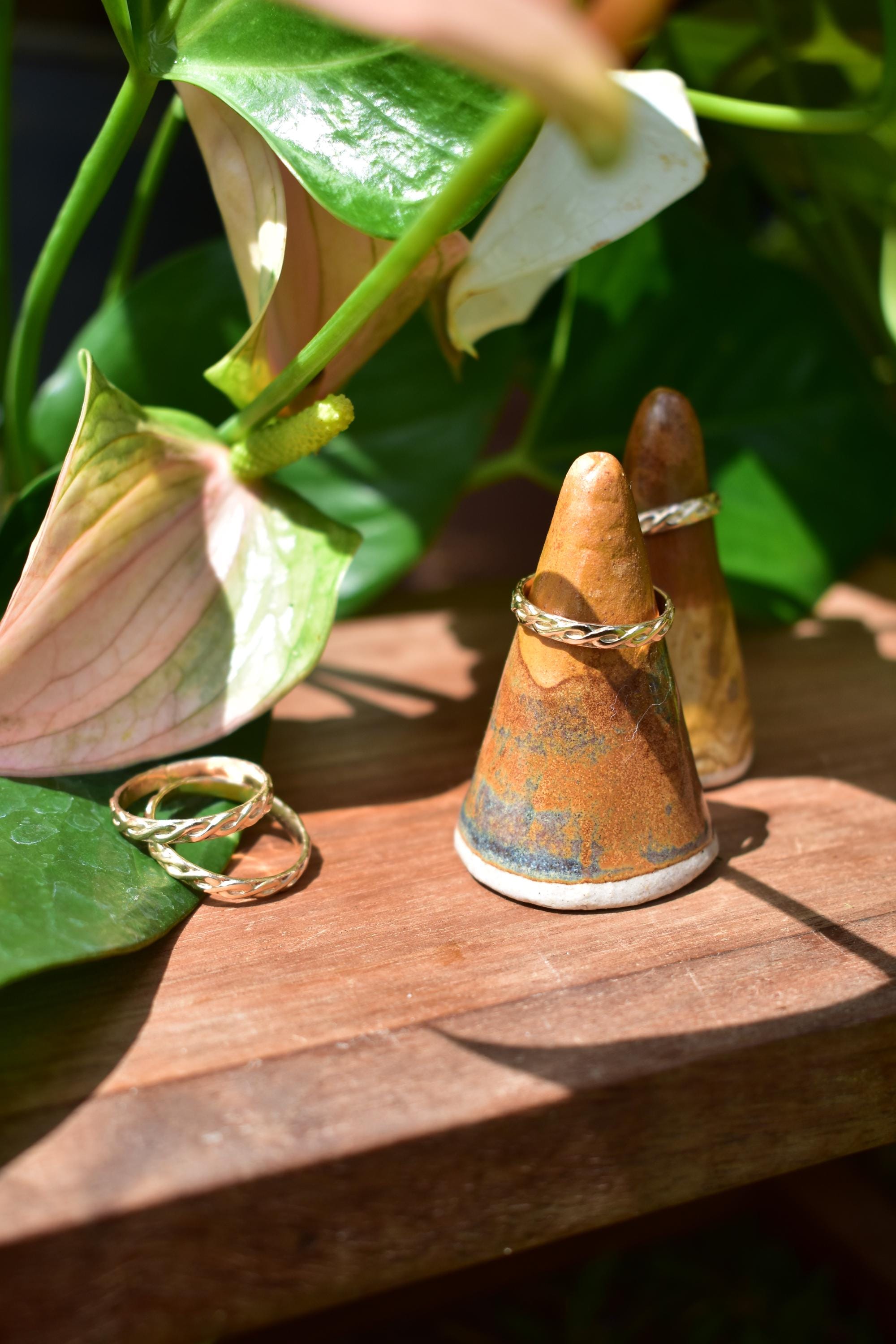 14k gold filled ring with braided imprint on outside